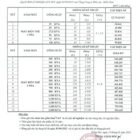 Bảng Giá Máy Biến Áp THIBIDI AMORPHOUS 2023 (TC 62-7691-3370)