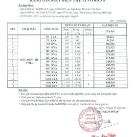 Bảng Giá Máy Biến Áp THIBIDI ECOTRANS 2023 (TC 62)