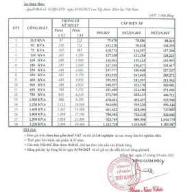 Bảng Giá Máy Biến Áp THIBIDI ECOTRANS 2023 (TC 2608)
