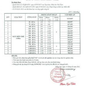Bảng Giá Máy Biến Áp THIBIDI SILIC 2023 (TC 62)